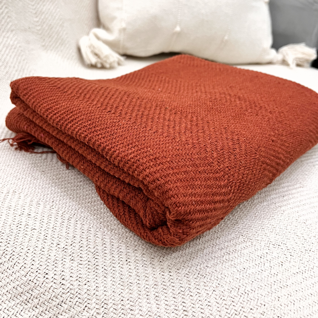 Integre a Manta Artesanal Frade em Terracota à sua casa e transforme qualquer espaço, apoiando ao mesmo tempo práticas artesanais sustentáveis.